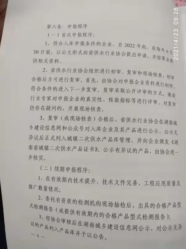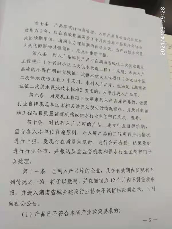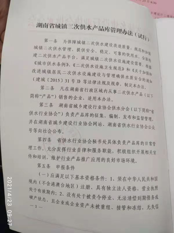 關(guān)于印發(fā)《湖南省城鎮(zhèn)二次供水產(chǎn)品庫(kù)管理 辦法(試行)》的通知